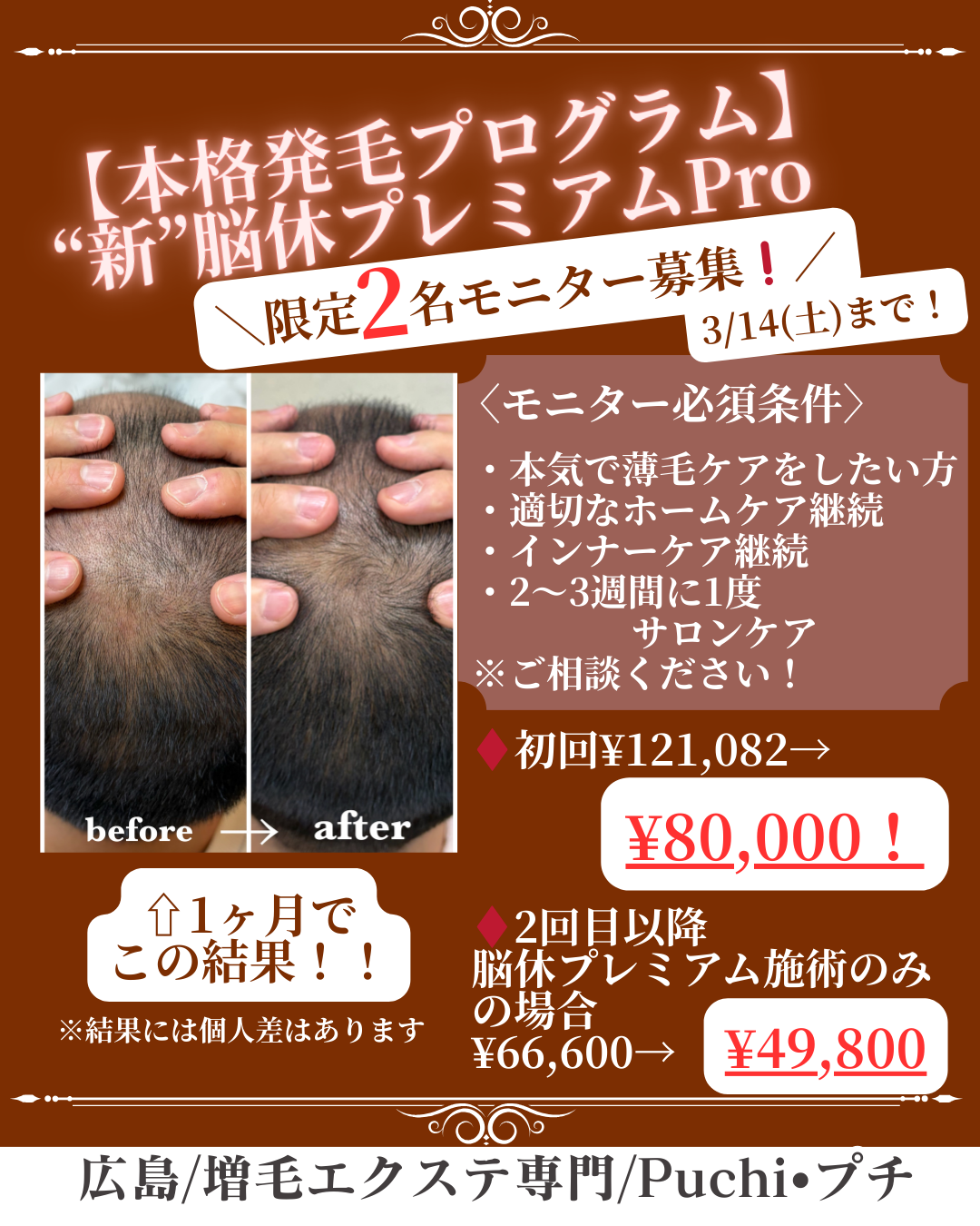 【広島で本気の薄毛改善】1ヶ月で変化を目指す発毛プログラム|“新”脳休プレミアムPro